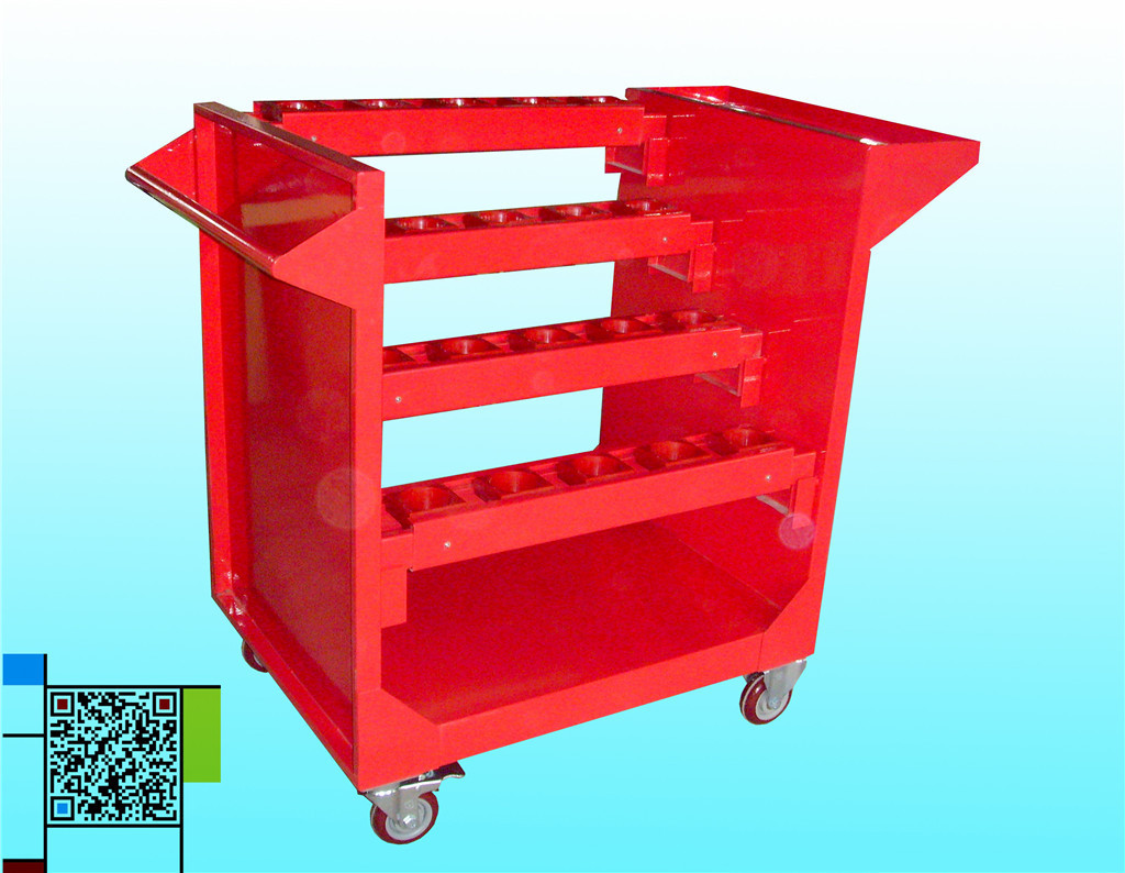 l 刀具车(架)两边有人字形成型钢板,可使用刀具座0°、15°、30°调节;两边配有定位器,可任意调换位置,便于刀柄的取放。
