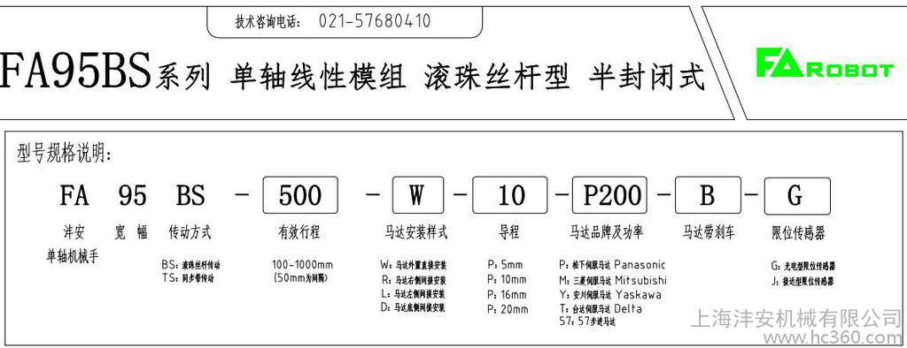 4.FA-ROBOT系列单轴机械手的订购型号用语说明: