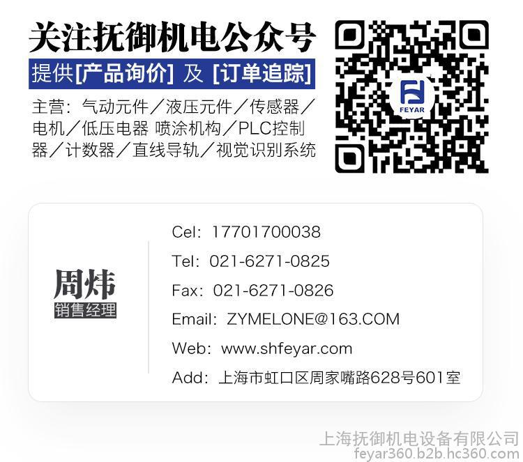 主营:气动元件,液压元件,传感器,电机,低压电器,喷涂机构,PLC控制器 ,计数器,直线导轨,视觉识别系