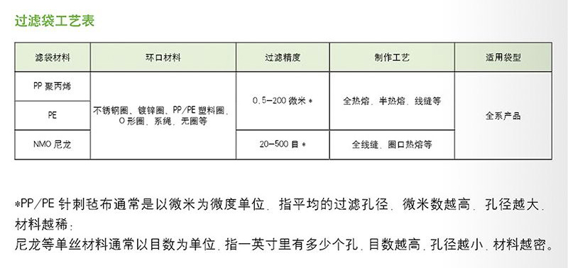 过滤袋是一种典型的物理过滤材料,滤布上分布有很多小孔,我们平时用微米【UM】来区分滤袋的稀密,小于孔径的颗粒会随着液体流走,大于孔径的颗粒会被截流,所以滤袋的品质与终的过滤效果有直接的联系,高品质滤袋不仅可以提高液体的纯净度,还能有效延长滤袋的使用寿命。因为滤袋精度越均匀,整个滤袋的有效过滤面积**越大,对杂质的拦截效果**越好。