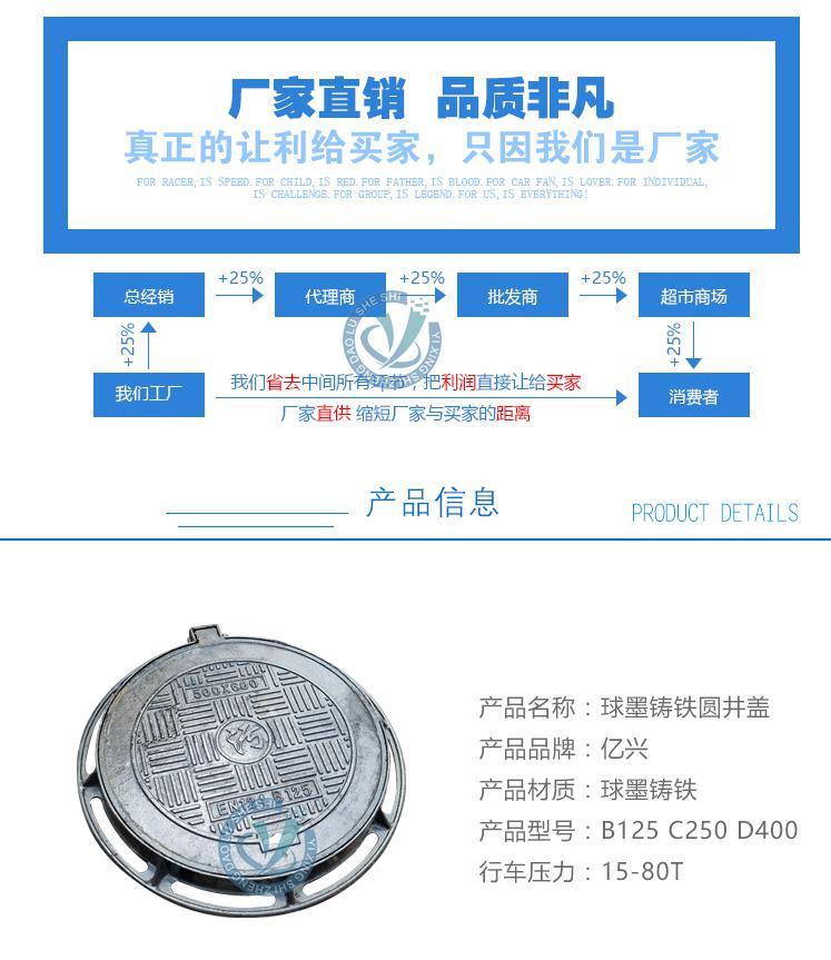 亿兴B125球墨铸铁圆形井盖800×900铸铁窨井盖电力通信消防井盖 球墨铸铁井盖