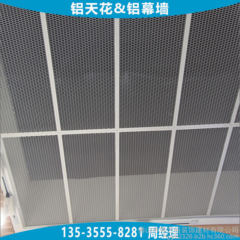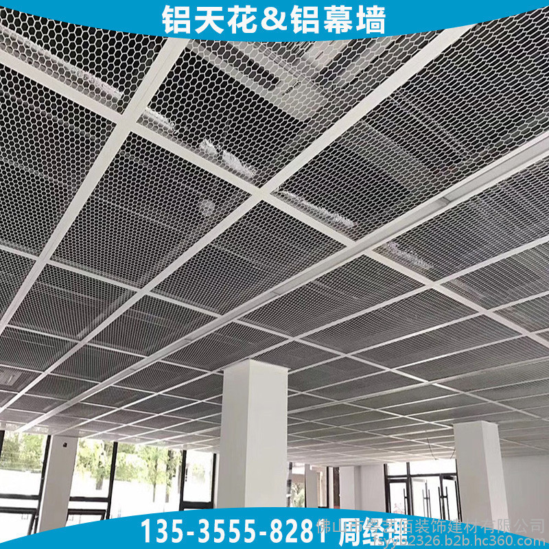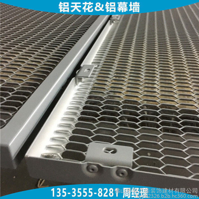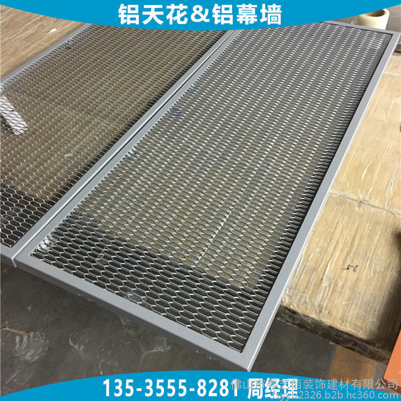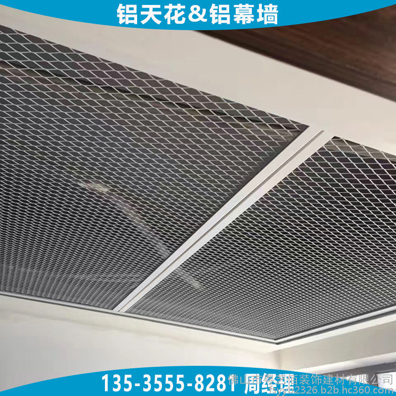天花吊顶用铝拉网板根据铝网网孔的形状通常分为四边菱形孔铝网板、六边菱形孔铝网板,两种网孔形状均可用于天花吊顶及幕墙装饰,网孔的规格大小种类繁多,根据不同吊顶的层高、面积大小、装饰效果合理选用,能够平衡效果与成本。铝网板的材料造价通常与铝网板所选用铝板板材的厚度、网孔规格的大小、铝网的梗宽、铝网板配套的边框要求及烤漆工艺等直接相关,所以在订购时需向厂家提供较为详细的上述参数要求。