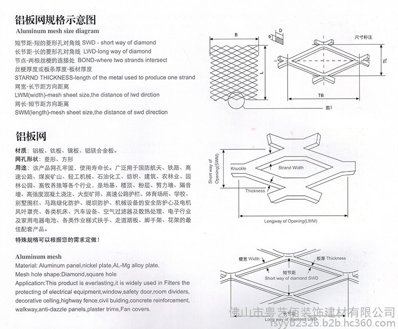 ※拉网铝板的网孔大小及梗宽是加工生产时必须要知道的两个重要参数