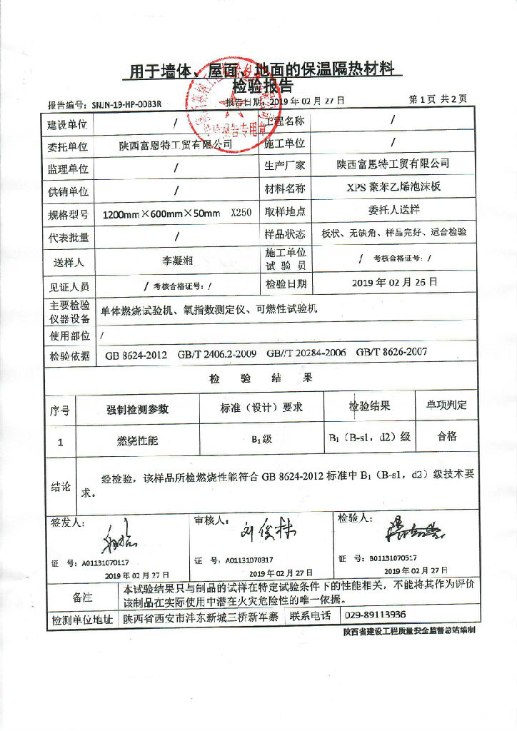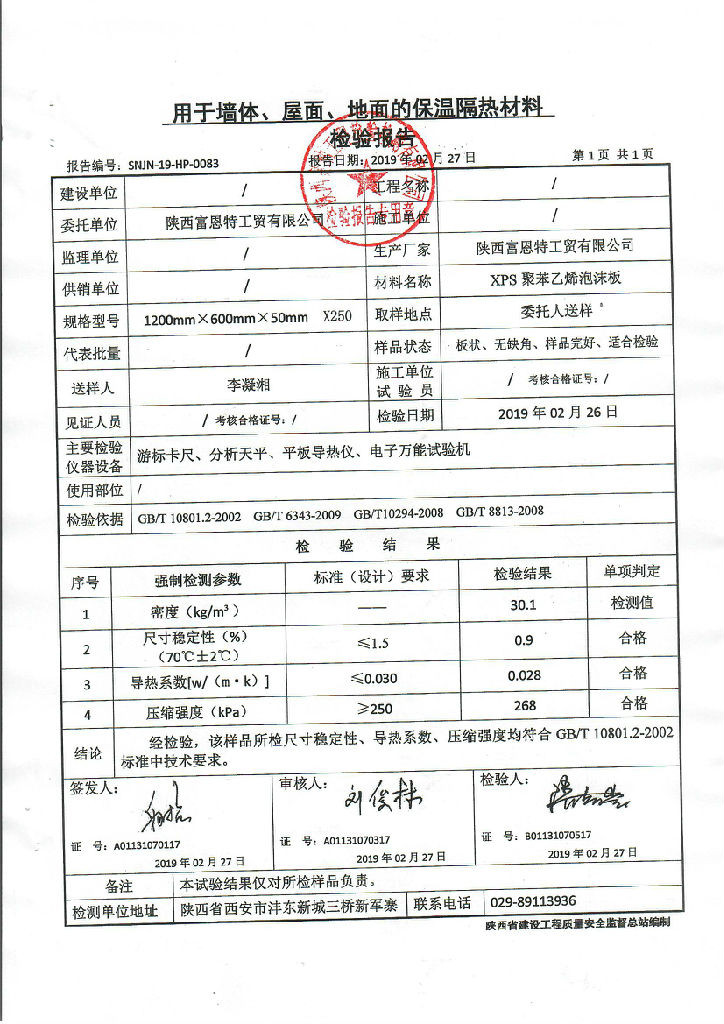 XPS挤塑板 检验报告
