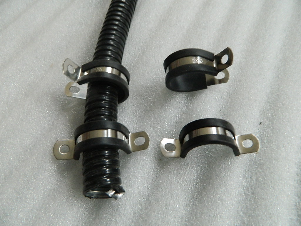 用 途:电线电缆、管件、金属软管、波纹管等紧固用产品,外包橡胶垫,紧固不受外力磨损及绝缘。