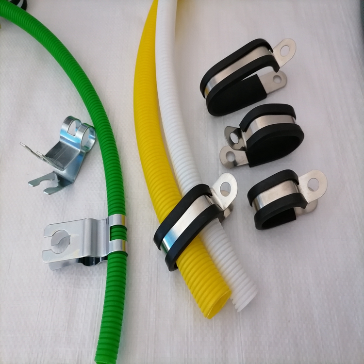 金属线夹(metal cable clamp)又称为卡箍、管卡、紧固夹、固定扣等;主要做为汽车、船舶、空调、电气自动化、消防等配件使用;金属线夹(metal cable clamp)可以起到一定的固定和支撑作用,安装方便、简单;宝福莱通机械有限公司引进德国多功能金属管夹成型机,加工外形复杂的高精度配件,金属线夹(metal cable clamp)主要是以钢带加工为主,经过材料矫直,步进送料,剪裁落料、圆周折弯成型工艺、外加辅助的冲孔、套胶条完成**终定型产品;宝鸡福莱通机械有限公司生产不锈钢/铁镀锌/铝等金属材质的金属线夹(metal cable clamp);产品有:R型线夹(R type pipe clamp)、U型线夹(U type pipe clamp)、单环垫(single loop cushioned)、马鞍形管夹(Saddle type cushioned)、连胶条卡箍(adhesive band clamp)、全包胶线卡(All inclusive plastic card);福莱通金属线夹(metal cable clamp)产品符合ROHS环保测试标准;广泛应用在冶金,船舶、海洋工程、重型机械、工程机械、机床、电力、液压系统、空调、高铁等各行各业;