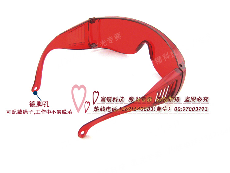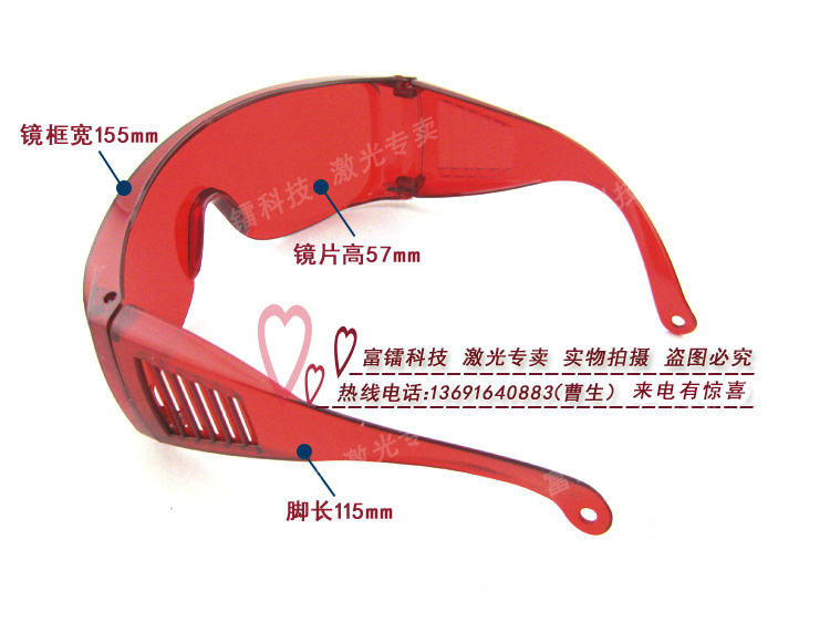此款眼镜针对200nm-540nm波段内的激光具有防护作用,但对550nm-660nm红色激光具有增透效果;它既可防止激光刺眼效果,又可以使红光看起来更加鲜艳清晰,所以此款眼镜在保护眼睛的同时,也能保证特定波段的可视效果,可延长红光可视性2-3倍。