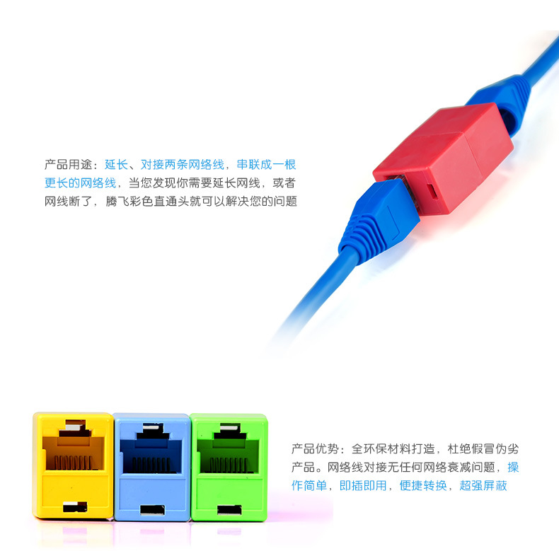 腾飞网络直通采用台湾进口**镀金,稳定性和传输性能比普通直通性能提高10倍以上。