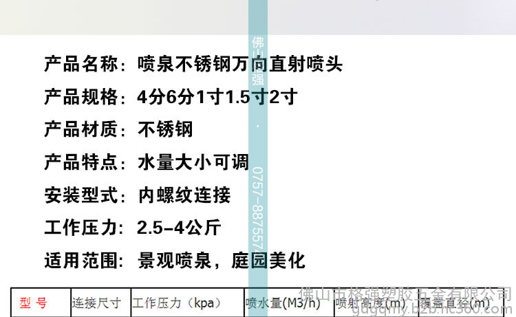 | 应用 | 水池、景观喷头 |