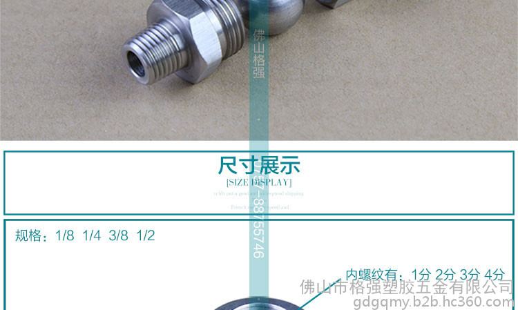 格强TE587304不锈钢155可调球形接头万向快速转接头旋转扇形锥形喷嘴喷头 万向接头