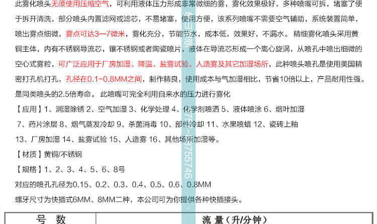格强5890快插雾化喷头喷嘴 铜材质陶瓷喷片快插式精细雾化喷嘴头低压喷嘴