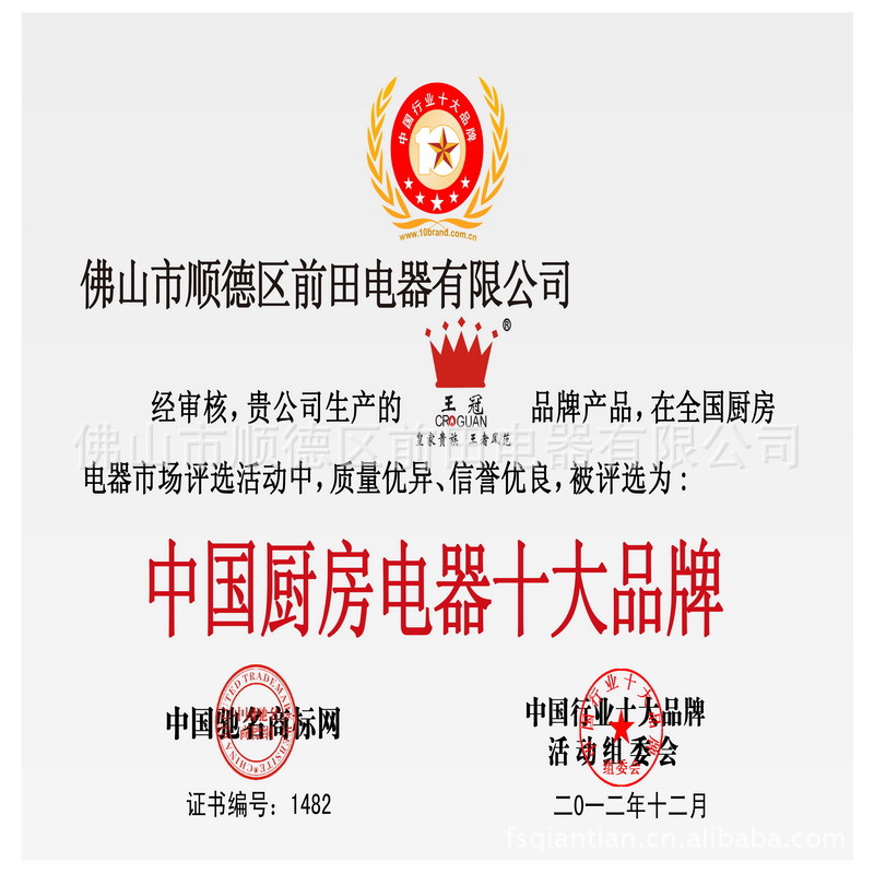 我司旗下品牌“王冠”被评选为“中国厨房**品牌”