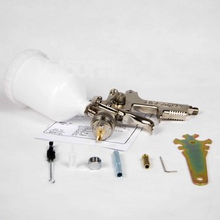 高精密度、高雾化、侧面调节扭适用更方便。上置环保喷壶,环型15孔高雾化喷漆效果,低压,低反弹,大扇面喷幅,不锈钢喷嘴,顶针、气盖喷枪表面镀镍,表面处理光洁。