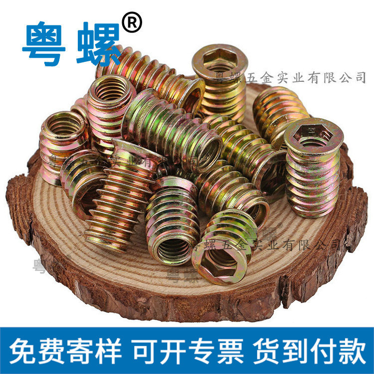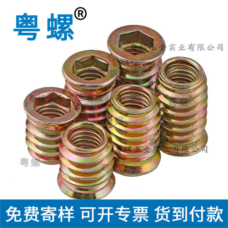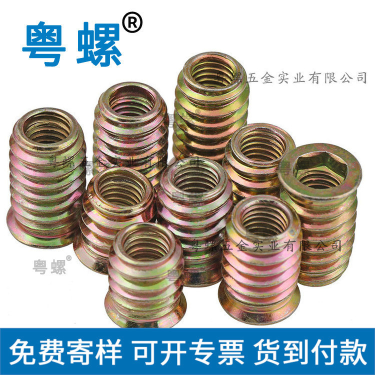 为达到此目的,铆螺母采用低碳钢冷挤,将帽沿冷镦成形,在凹模内挤压出变形裙部,再在变形裙部的下端挤压出螺纹丝孔。其特征是它由帽沿、变形裙部,螺纹丝孔构成。帽沿的下方有鱼牙齿;螺纹丝孔下端的外侧具有导角;螺纹丝孔的内壁的螺纹的断面呈等腰梯形,梯形的上底为凹弧形。从而使铆接物件与铆螺母紧固连接。