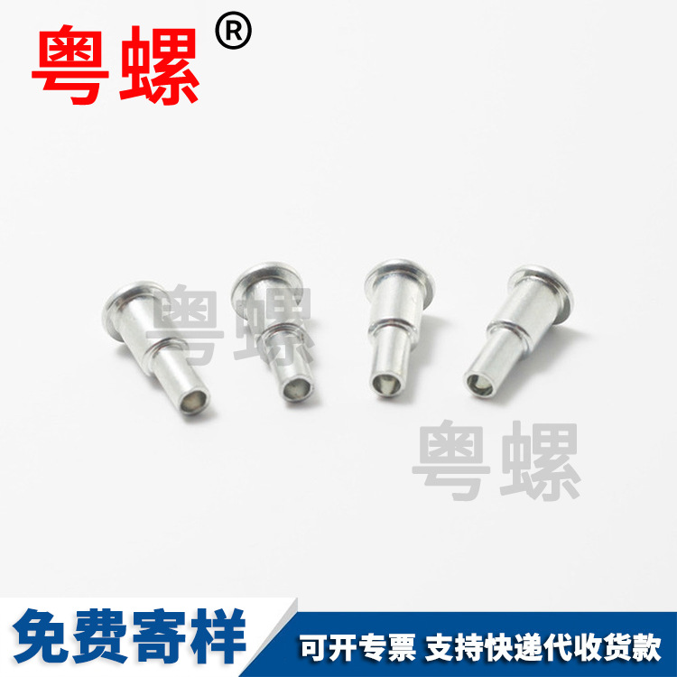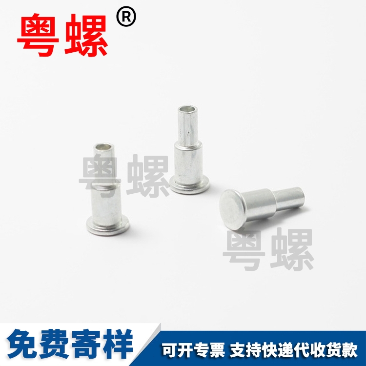 粤螺如图1、2所示,一种自动锁紧螺钉,从下到上依次为设有外螺纹的螺钉头1、 螺钉杆和螺帽3,螺钉杆是空心螺钉杆2,且空心螺钉杆2两侧分别设有长孔7,长孔7的 宽度小于空心螺钉杆2的内径,空心螺钉杆2的内腔中设置弹簧4,弹簧4在自由伸展状 态下不小于空心螺钉杆2的长度,弹簧4上端设有堵头5,堵头5的两翼6的距离大于螺 帽3的直径,堵头5的两翼6通过长孔7伸出在空心螺钉杆2外。粤螺使用时只需要通过两翼向下压缩弹簧,露出空档后插入U型线夹,然后松开 两翼,弹簧会自动回复并压紧U型线夹,使用方便,安全可靠。权利要求1.一种自动锁紧螺钉,从下到上依次为设有外螺纹的螺钉头、螺钉杆和螺帽,其特 征是螺钉杆是空心螺钉杆,且空心螺钉杆两侧分别设有长孔,长孔的宽度小于空心螺 钉杆的内径,空心螺钉杆的内腔中设置弹簧,弹簧上端设有堵头,堵头的两翼通过长孔 伸出在空心螺钉杆外。化工生产设备中,需要将筒体与封头顶盖进行连接,且需要密封。传统的密封结构是用一个螺钉将两者连接,中间加上非金属垫片并用螺母固定。但是这样的密封只控制上紧力矩的紧固结构,存在重复装卸缸盖罩时会造成密封圈扭曲甚至断裂,以致密封性差的技术缺陷。