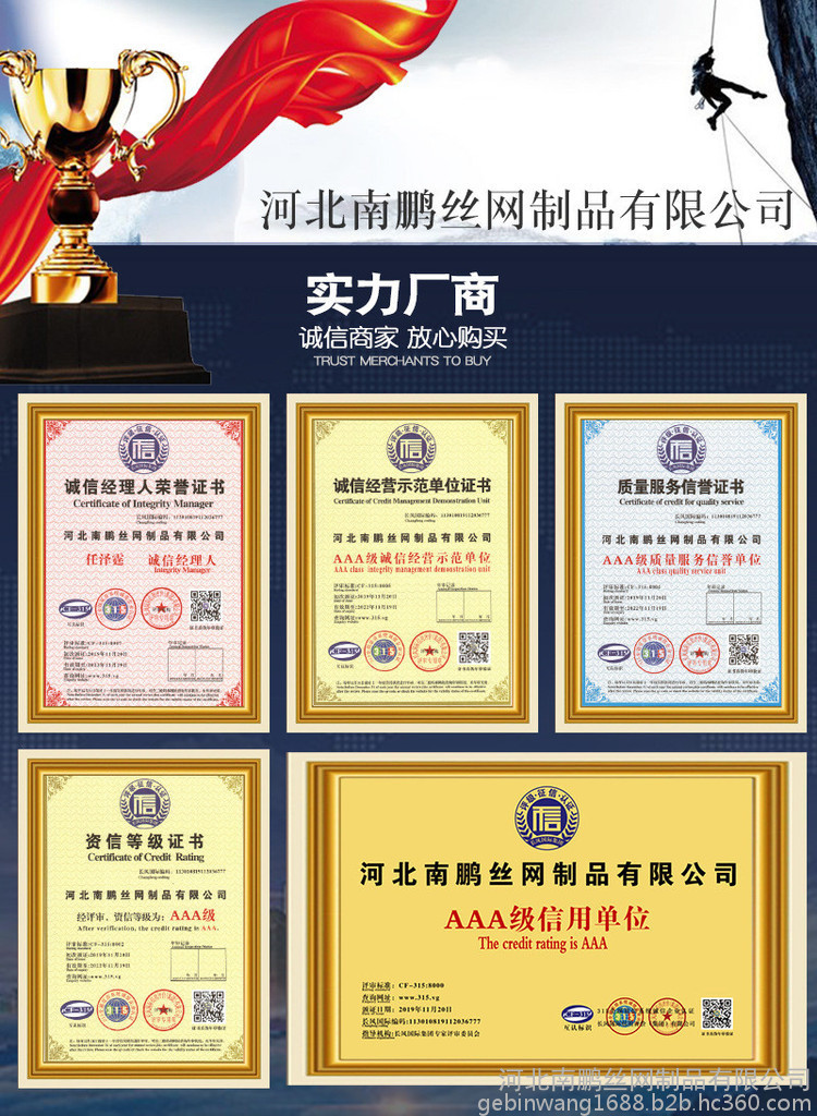 3.高尔凡(锌铝合金)。这样的分为两种材质,锌-5%铝-混合稀土合金钢丝、锌-10%铝混合稀土合金钢丝。防腐性**