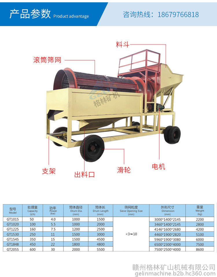 滚筒分级筛1860 50滚筒筛沙机 固定式圆筒筛 格林机械 滚筒分级筛