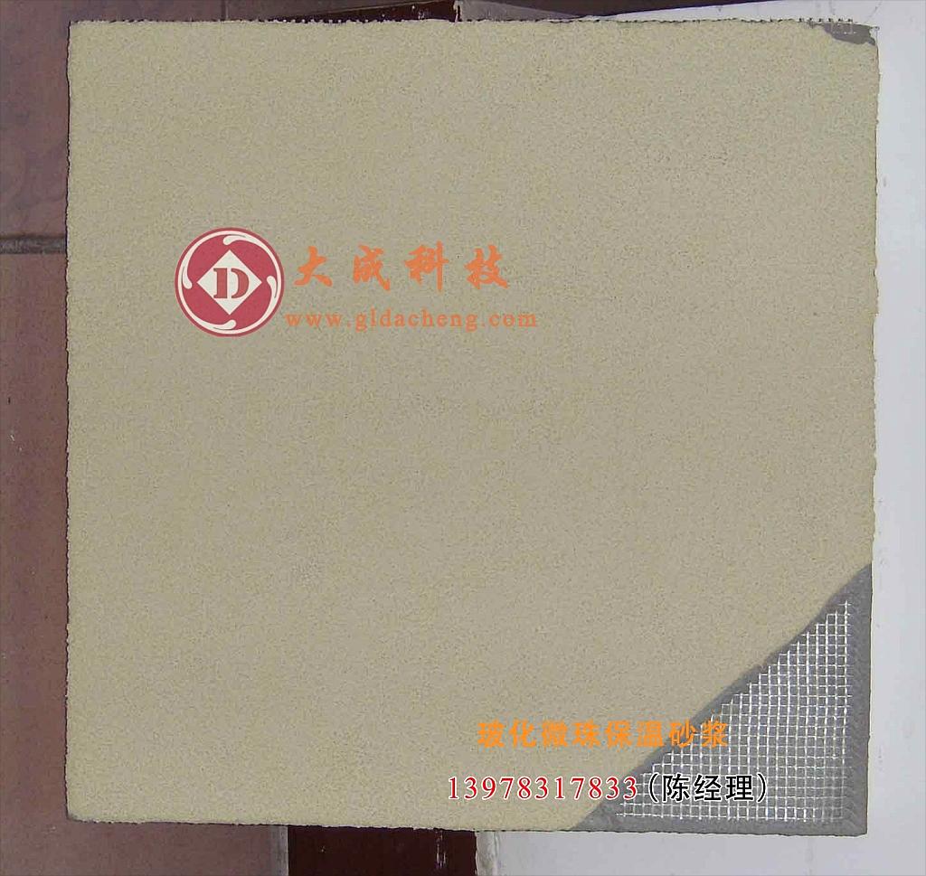 大成玻化微珠保温砂浆:是一种新型保温隔热材料,与用聚苯颗粒和普通膨胀珍珠岩作轻质骨料的保温砂浆相比,具有强度高、质轻、保温、隔热好、电绝缘性能好、耐磨、耐腐蚀、防辐射等显著特点。