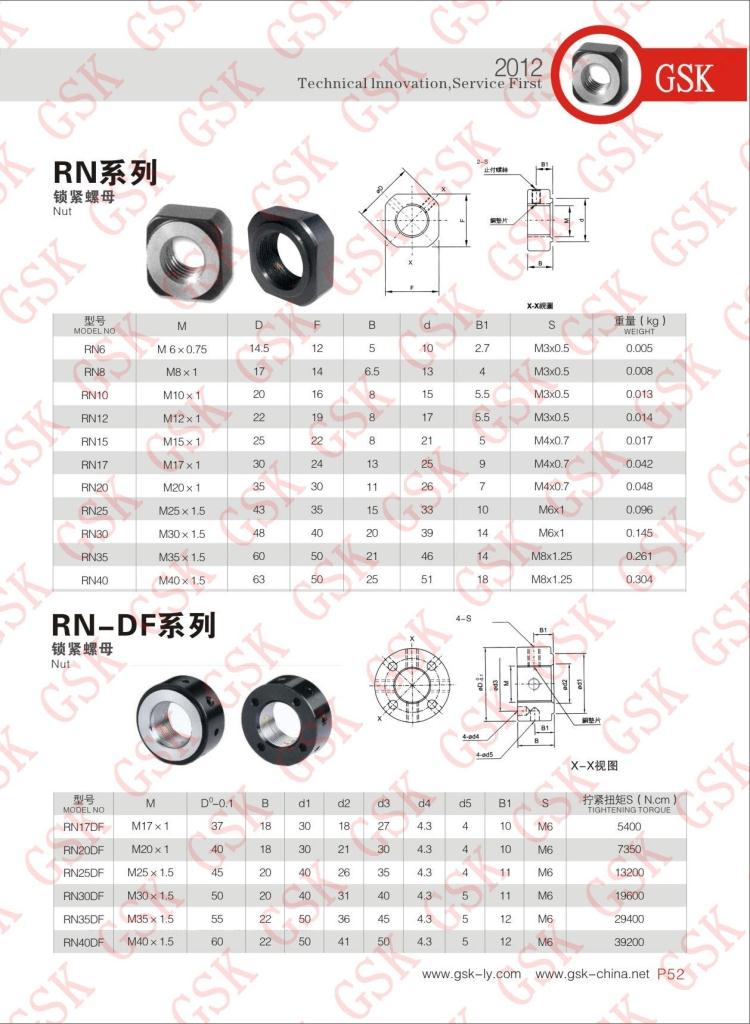GSK滚珠丝杆锁紧螺帽RN6、RN8、RN10、RN12、RN15、RN17、RN20、RN25、RN30、RN35、RN40
