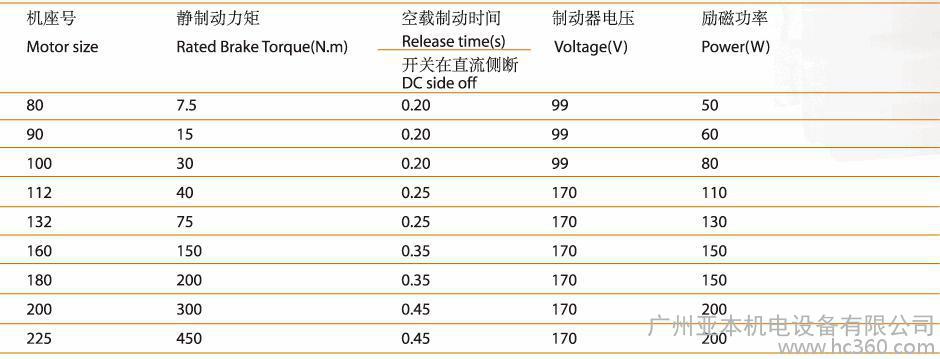 电磁制动器额定电压:电动机机座号为71-100者为直流99V,112-200者为直流170V。