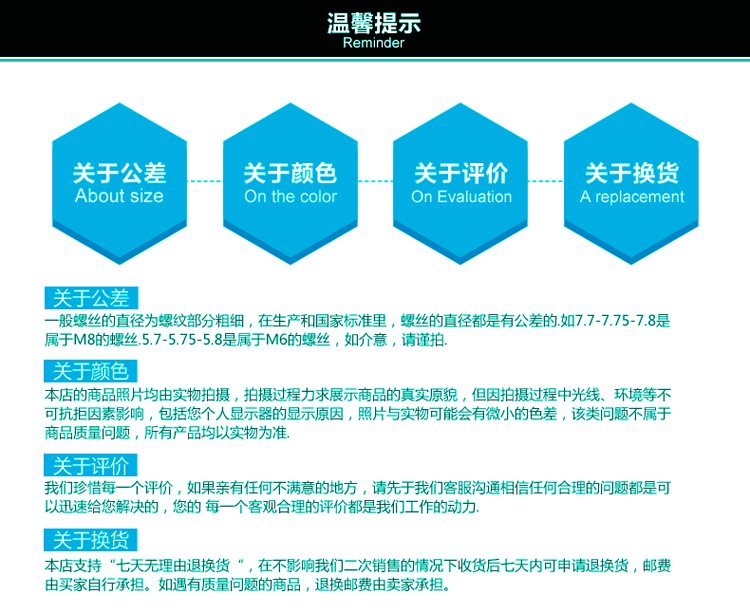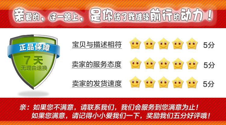 本店支持7天无理由退换货! 本店产品运费按照重量计算可能会有误差,量大客户拍下后请联系客服计算邮费,我们将多退少补!! 支持产品定加工! 注:拍下产品低于10元可能被系统关闭,量大价格另议!