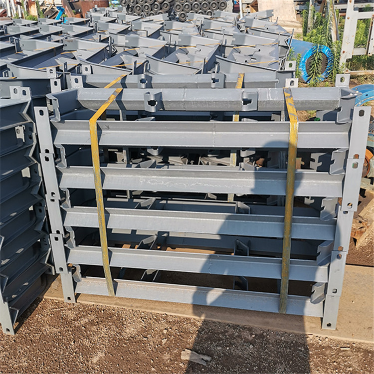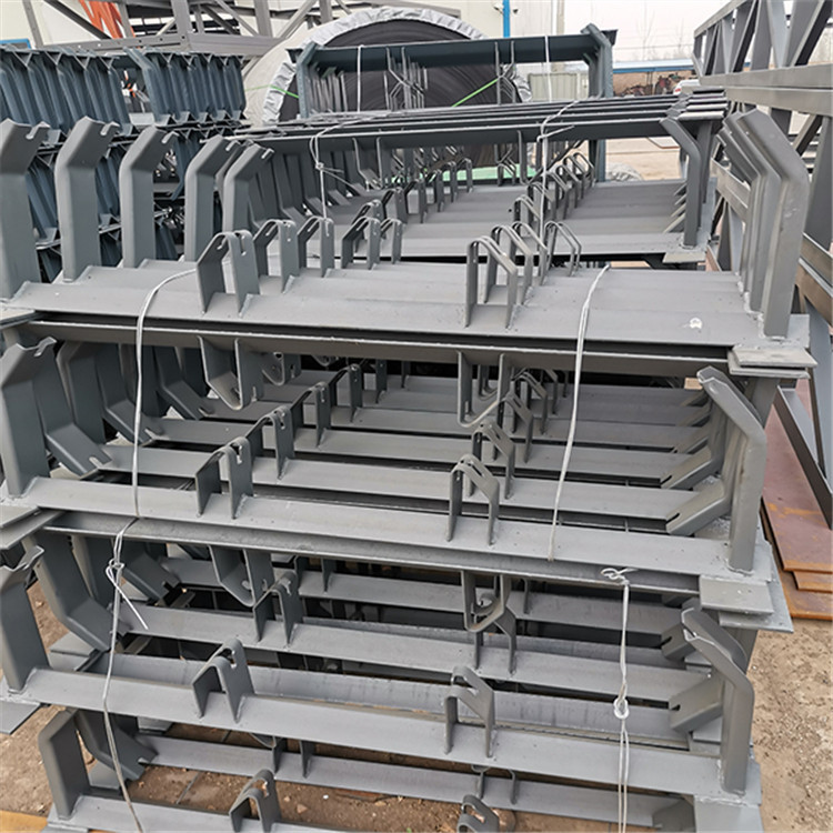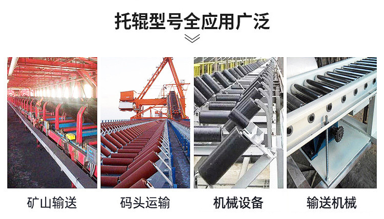 托辊支架装置既便于更换托辊的托辊支架装置,涉及有可偏转托辊支架、支座、销轴、机身、托辊、限位块和紧固件组成。支座下端与机身上端用紧固件连接在一起,支座则用销轴与可偏转托辊支架连接在一起,在可偏转托辊支架上设置有托辊。在可偏转托辊支架上,设置有供绕销轴转动的卡槽,托辊则安装在可偏转托辊支架的卡槽中,在可偏转托辊支架上设置有控制偏转角度的限位块。在支座或机身上设置有供可偏转托辊支架绕其转动的销轴,在拆下紧固件的情况下,可偏转托辊支架可以在限位块的控制下绕水平固定的销轴转动一定的角度。 槽型支架属于托辊支架的一种。采用先进的生产工艺,可靠产品。槽型托辊清除皮带沾物,在斜坡皮带上送力大,阻力小。双节托辊,能减小皮带在陶瓷托辊上的重形压力点,托辊中空装置能使带沾物自行掉落,不沾吸托辊,均能延长托辊使用期。