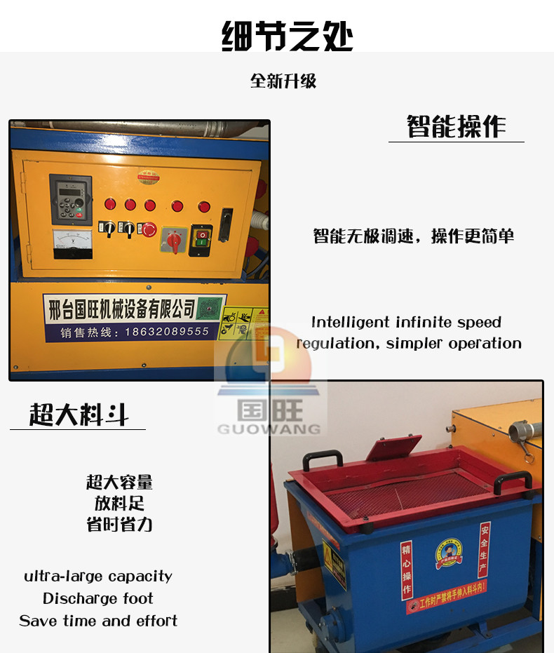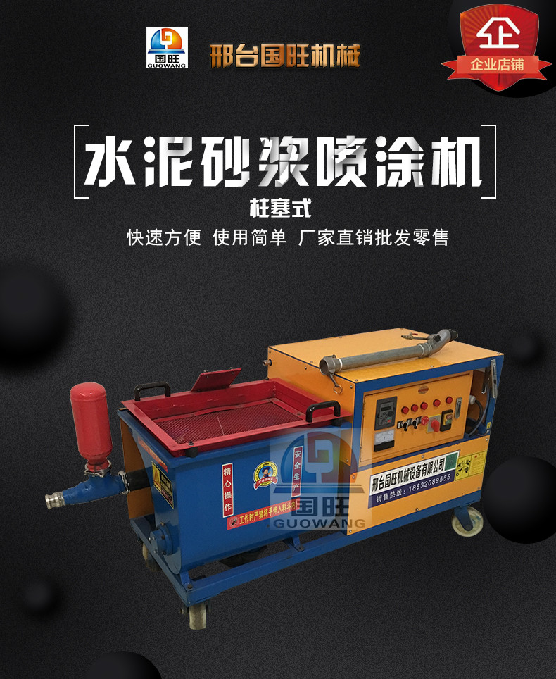 砂浆喷涂机是我公司近年来不断开发研制的新一代砂浆泵输送喷涂的新产品,本机具有工作压力大、流量大、效率高、操作方便、安全可靠、移动灵活、结构紧凑、易于保修保养等特点。