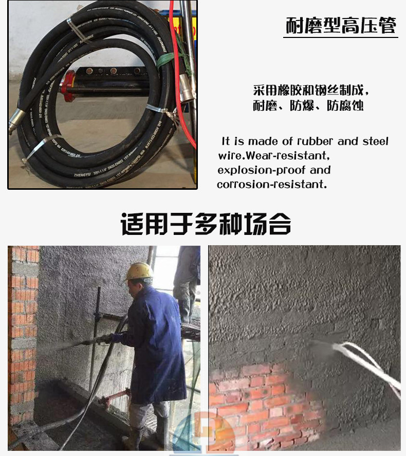 1、 在建筑工程中,用于水平垂直输送砂浆或大面积喷涂。