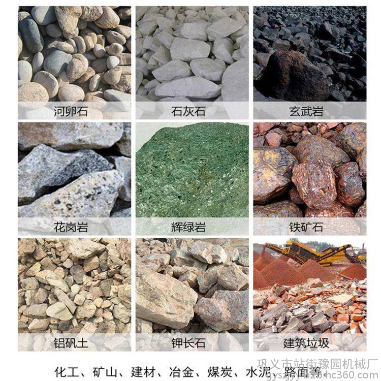| 适用物料 | 花岗岩、玄武岩、石灰岩、河卵石、水泥熟料、石英石、铁矿石、铝矾土、建筑垃圾、盐、砖瓦、煤等 |