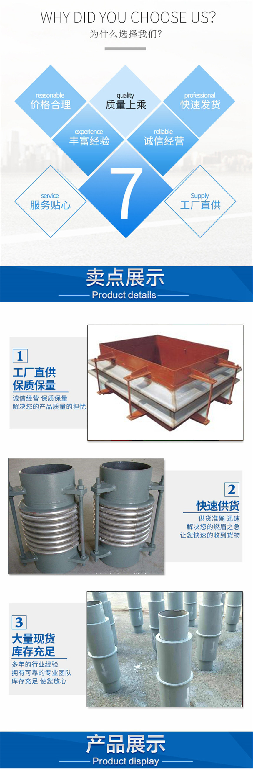 6、特别是FVB和FUB型,为高性能产品,因起波高而宽,其压缩、伸长、角向、横向、偏转位移量更大,非常适合工作条件较为苛刻的场所。