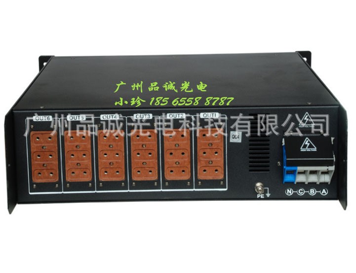 1.使用前请先接好所需要的供电设备.本产品可直接接入舞台2KW常规灯具18只 或2KW电脑摇头灯18只;6路单独控制三个一组;