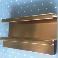 衣柜小单吊轨、衣柜小双吊柜;3.0厚轨、2.8厚轨、2.0厚轨、1.1厚轨等,通用推拉门吊轨,玻璃门吊轨,颜色有电泳香槟色、银白、哑光、普通香槟色,铝合金移门趟门上下轨道(香槟和银白),银白哑光移门双轨,喷涂铝合金窗帘轨道,香槟色380轨道等。