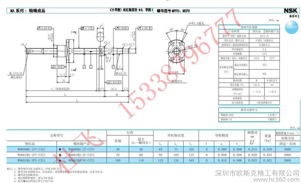 深圳市欧斯克精工有限公司代理销售日本NSK滚珠丝杆,精机产品