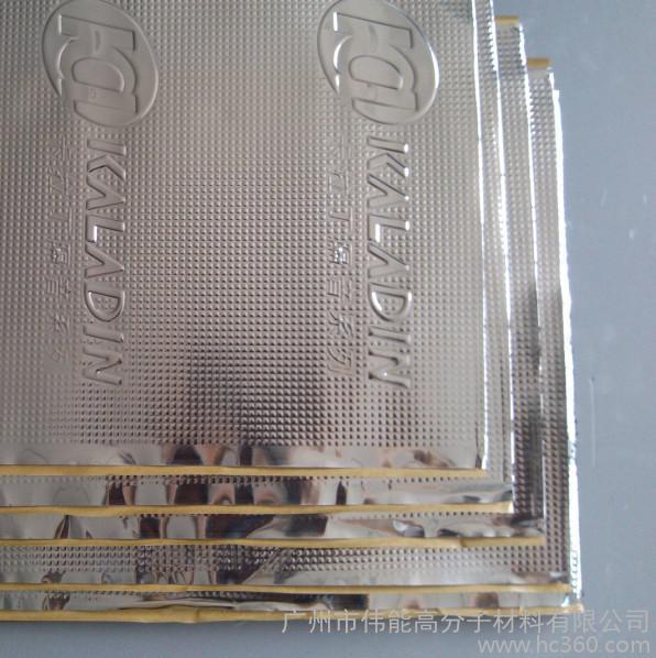 减震板 | 丁基橡胶和纯金属铝箔复合,环保,无异味产生,且不受潮不老化,持久稳定 | 工业沥青,用于建筑堵漏,有异味,挥发气体有害健康。易老化和龟裂 |