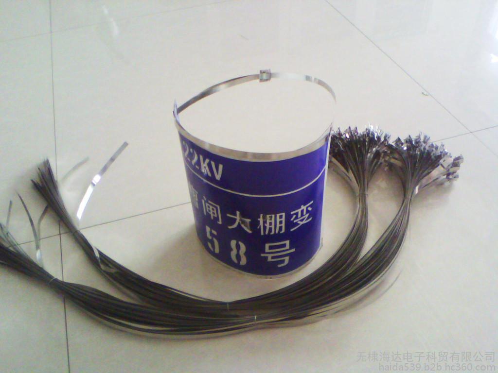 本公司专业生产扎带系列:价廉物美!不锈钢扎带依据使用场地可灵活扎。抗老化、防腐蚀、紫外线、扎力紧、不生锈。适用于露天。潮湿。高温等室内外场所捆扎。不锈钢电缆扎带的技术性能完全符合IEC92号≤船舶电气设备≥有关规定。扎带正常工作T条件环境温度-60℃工作温度105℃广泛应用于工业、农业、通信、石油、航空、交通、船舶工业