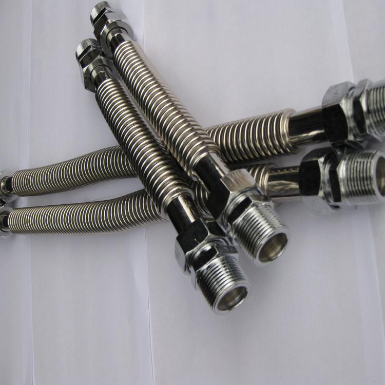 由于制作软管主要零件的材料是采用不锈钢,因而保证了软管优良的耐温性和耐蚀性,软管的工作温度范围极广,为 -196—600 度,使用的软管按管道所通介质的腐蚀性选择适用的不锈钢牌号,即可保证软管的耐蚀性。 1.金属软管整体采用1Cr18Ni9Ti不锈钢材料制成,具有较强的耐腐蚀能力。 2.软管管体为薄壁不锈钢管体液压成形,具有较强的柔韧性、伸缩性、弯曲和抗振能力强、编织网套的加强保护、使之具有更高的承压能力。 3.软管两端的连接还可制成除螺纹、法兰标准之外的其他连接方式,方便连接和使用。