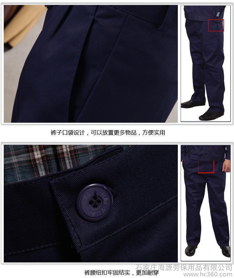 此款为男女同款套装,上衣裤子均为深蓝色。