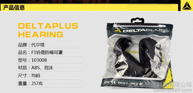 代尔塔 103008专业隔音耳罩 防噪音工厂 护耳器 降噪耳罩 安全帽专用