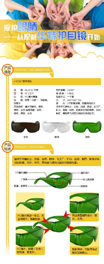 本公司供应华特HT2301防护眼镜,防紫外线超大 带沿可挂式 劳保电焊眼镜批发 12副/盒,质量保证,欢迎咨询洽谈。