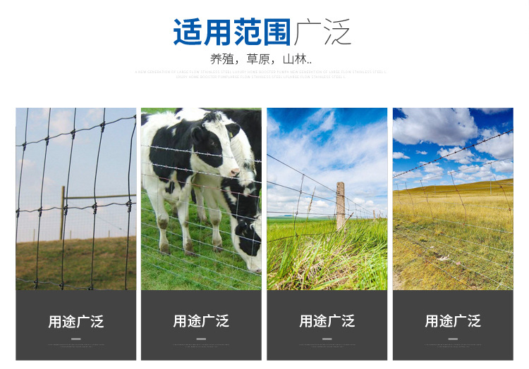 2.牛栏网草原网钢丝,波形环表面镀锌,其它零件均采取防锈防腐蚀施,可适应恶劣工作环境