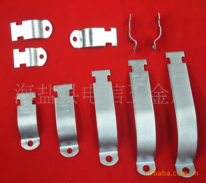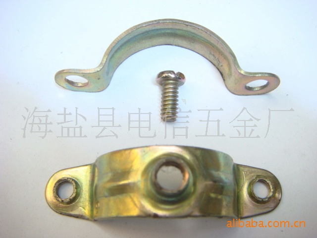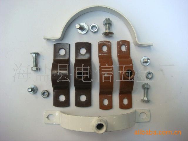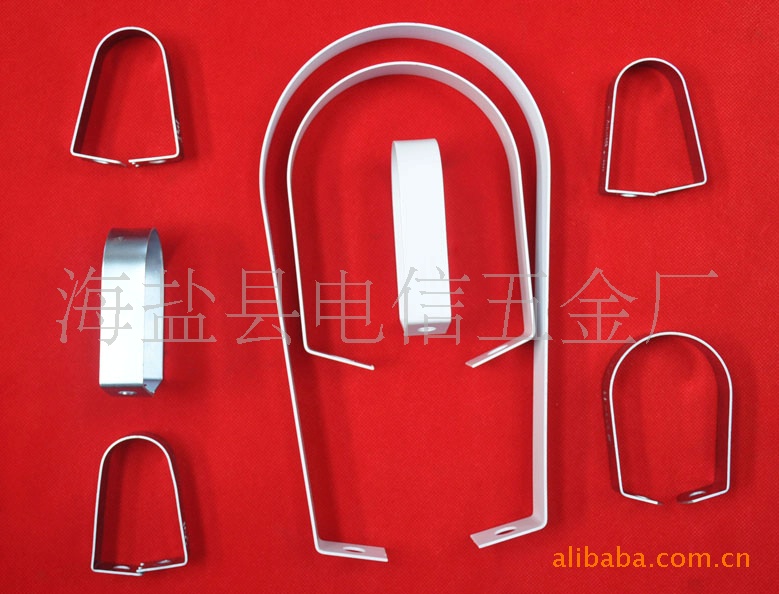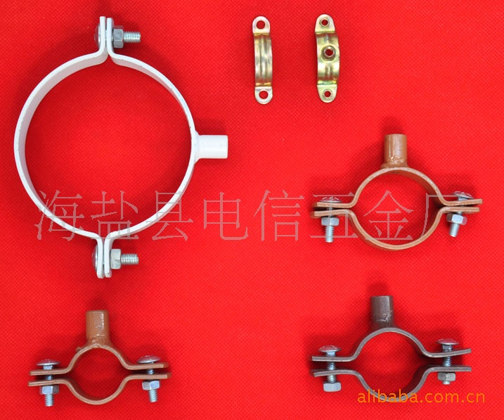 用于建筑PVC管道固定抱箍;上面焊接的是多工位冷镦机打出来的圆型螺母,冲压成型,点焊,焊接,抛丸除锈,静电喷塑,多种加工设备加工而成,在组装。模具研发加工实力雄厚,多种管道安装固定,表面喷塑,镀锌处理美光大方,质量保证。