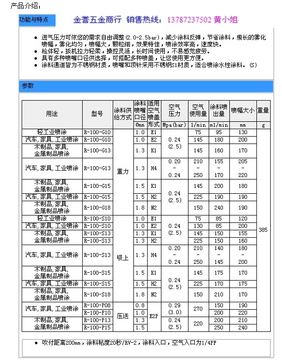 供应宝丽R-100宝丽喷枪(含R-100G R-100P R-100S)