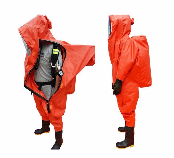 全密封一级化学防护服(重型防化服)是消防员进入化学危险物品或腐蚀性物品火灾或事故现场,以及有毒、有害气体或事故现场,寻找火源或事故点,抢救遇难人员,进行消防救援和抢险救援时穿着的防护服装。也是各级化工企业、环保部门进行危险危险品处理的防护必需品。