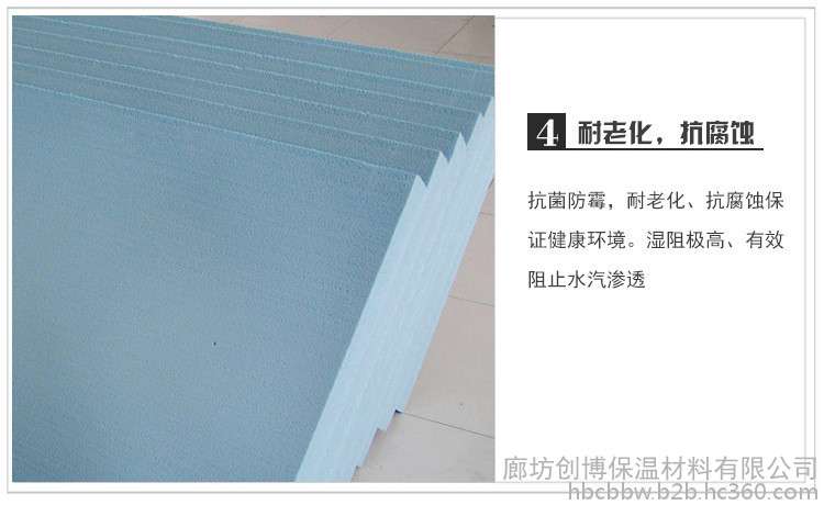 吸水率是衡量保温材料的一个重要参数。保温材料吸水后保温性能随之下降,在低温情况下,吸入的水易结冰,破坏了保温材料的结构,从而使板材的抗压及保温性能下降。由于聚苯乙烯分子结构本身不吸水,XPS挤塑板板材分子结构,无间隙,解决了其它材料漏水、渗透、结霜、冷凝等问题。