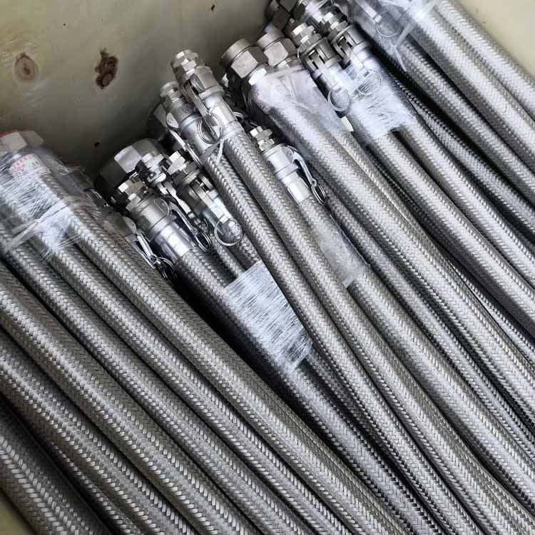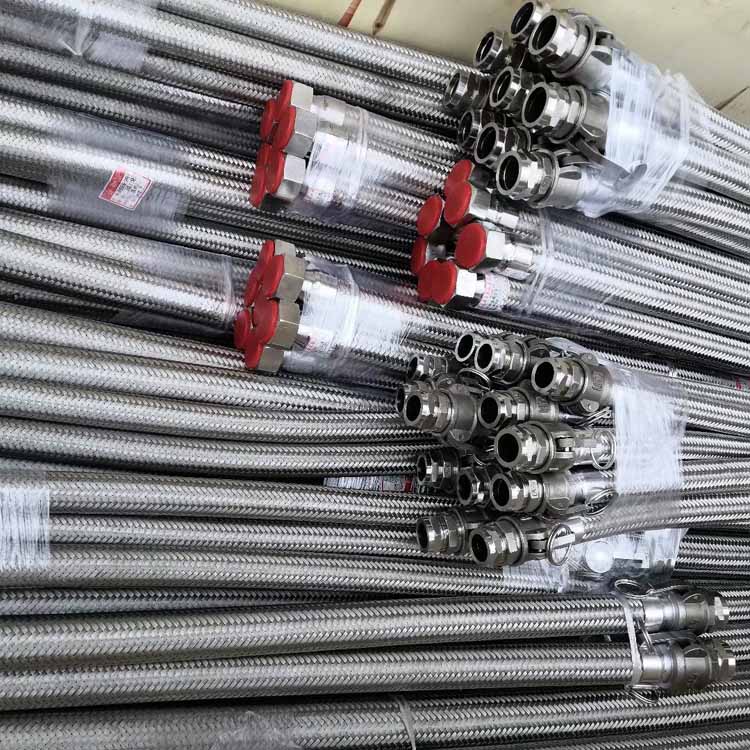 波纹管外编一层或多层钢丝或钢带网套,两端以接头或法兰,用于输送各种