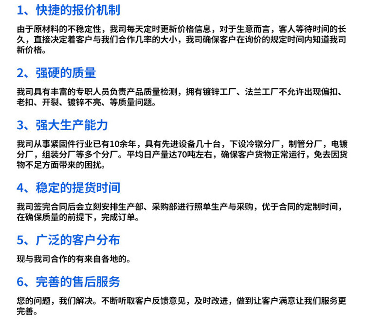 公司是电力、石油、石化物资定向采购单位之一,主要承接热力公司、集中供热、化工、煤矿、水电建设、石油化业所需的各种保温防腐管道及管道配件,产品质量均超过国内同类产品的水平,并得到用户的一致好评和肯定,在本行业享有一定的盛誉。我公司宗旨:诚信为本,质量可靠,互惠互利,共谋发展!