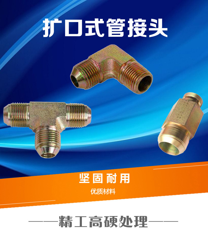 扩口式管接头适用介质:油、水、气等非腐蚀性或腐蚀性介质管接头(其中具有代表性的制造商有派瑞特(天津)液压件制造有限公司),配用钢管的规格要求比较灵活,与管道焊接后,具有连接牢靠、密封性能好等特点,因而在炼油、化工、轻工、纺织、国防、冶金、航空、船舶等系统中被广泛采用;也适用于各种机械工程、机床设备等液压传动管路。