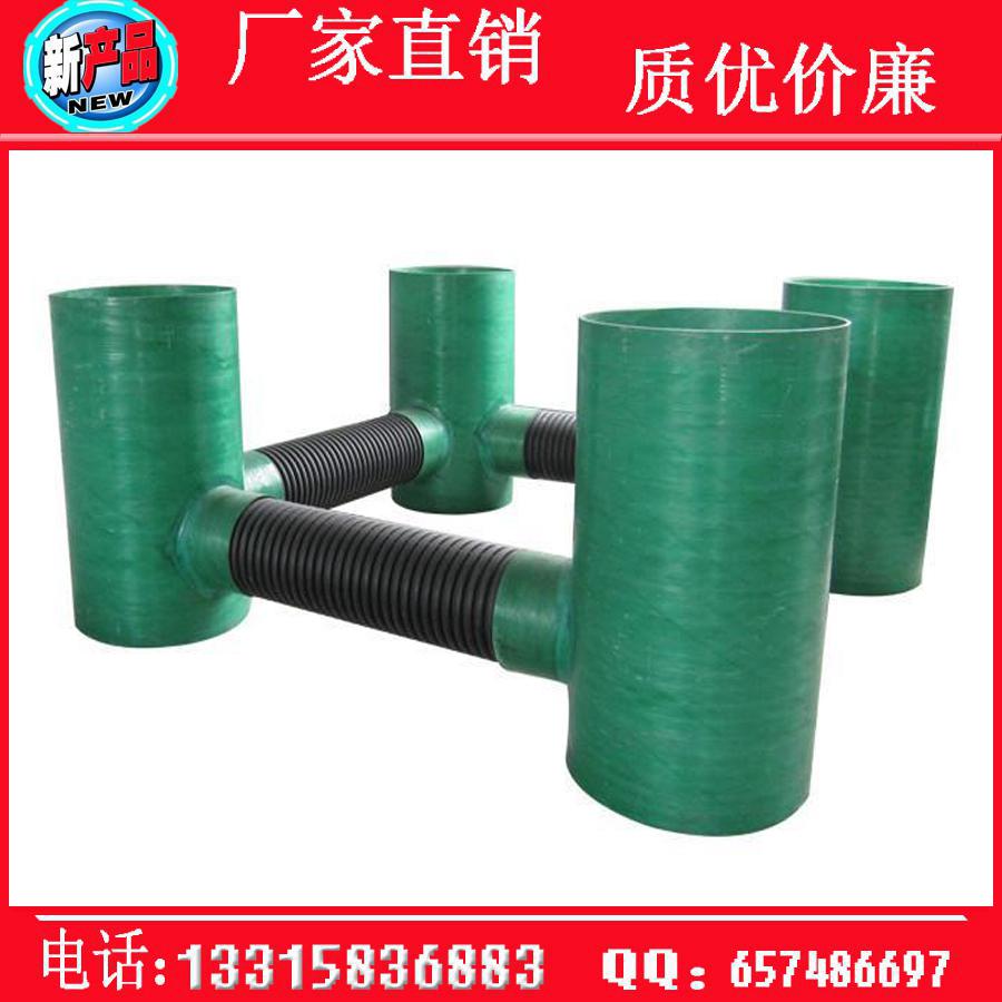 连接方式:承口加橡胶圈连接,与PVC、双壁波纹管接口通用、可做起始井,二通井,三通井,四通井,沉泥井,跌水井等,开口灵活,连接方便,可现场开孔,也可跟客户要求定做。