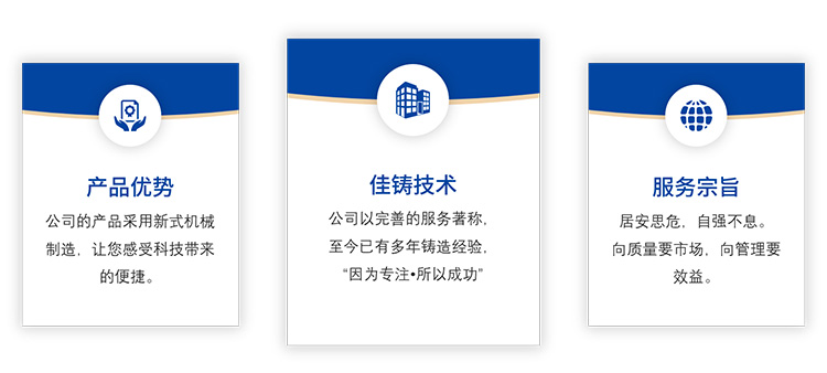 河北佳铸以新的市场理念,建立已客户为中心,完善的订单跟踪和反馈系统,认真研究客户的意见,不断地改进,以专业的销售,售后服务,赢得客户信任。