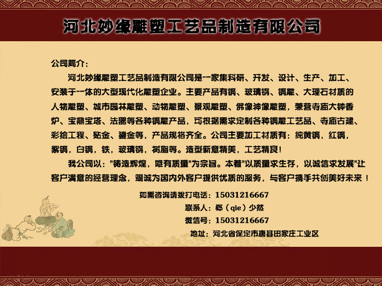 河北妙缘雕塑工艺品制造有限公司,垂询电话15031216667(郄少然)